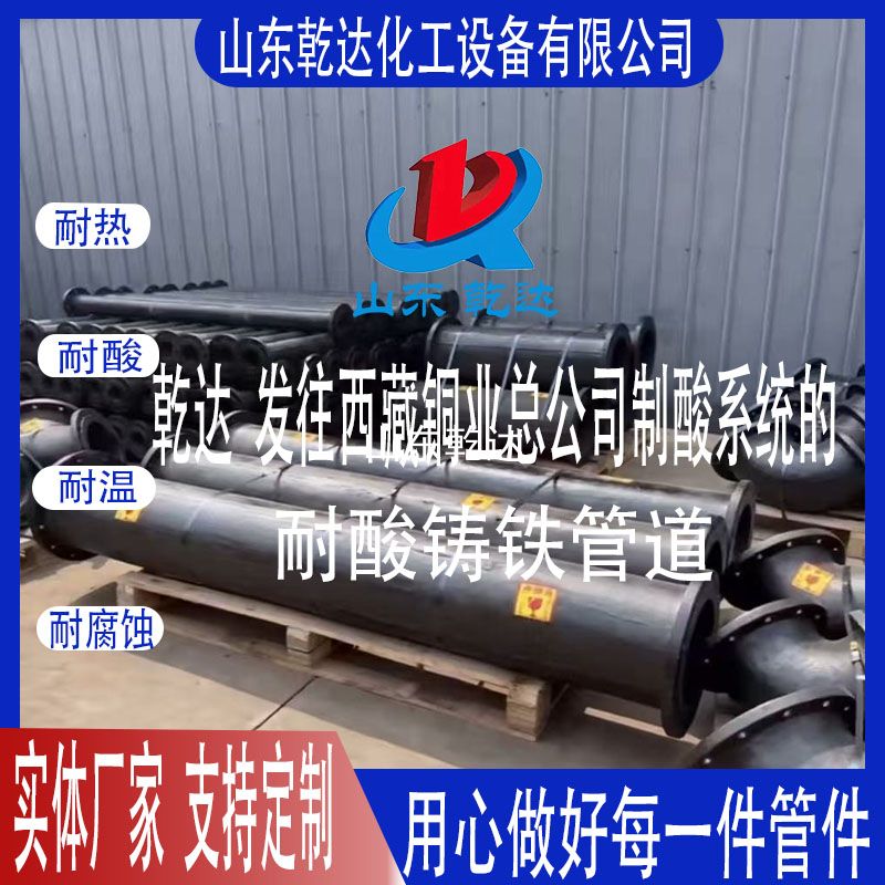山東乾達 發(fā)往西藏銅業(yè)總公司制酸系統(tǒng)的耐酸鑄鐵管道 生產(chǎn)廠家